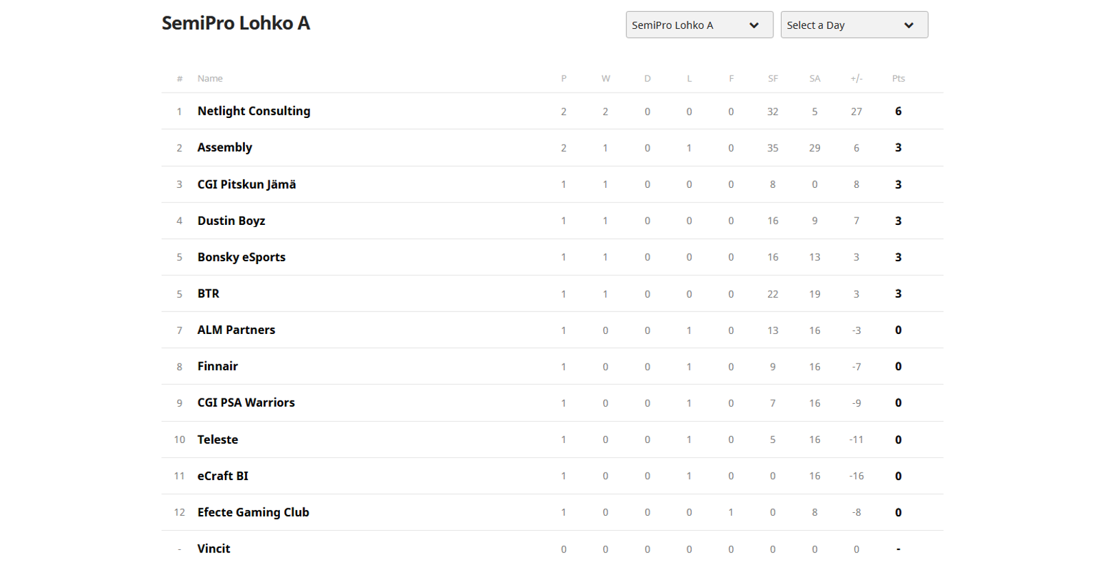 Semi-Pro -sarjan tilanne Sunnuntaina 25.08.2019