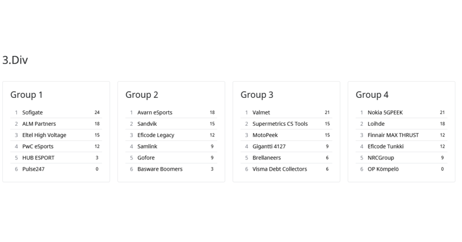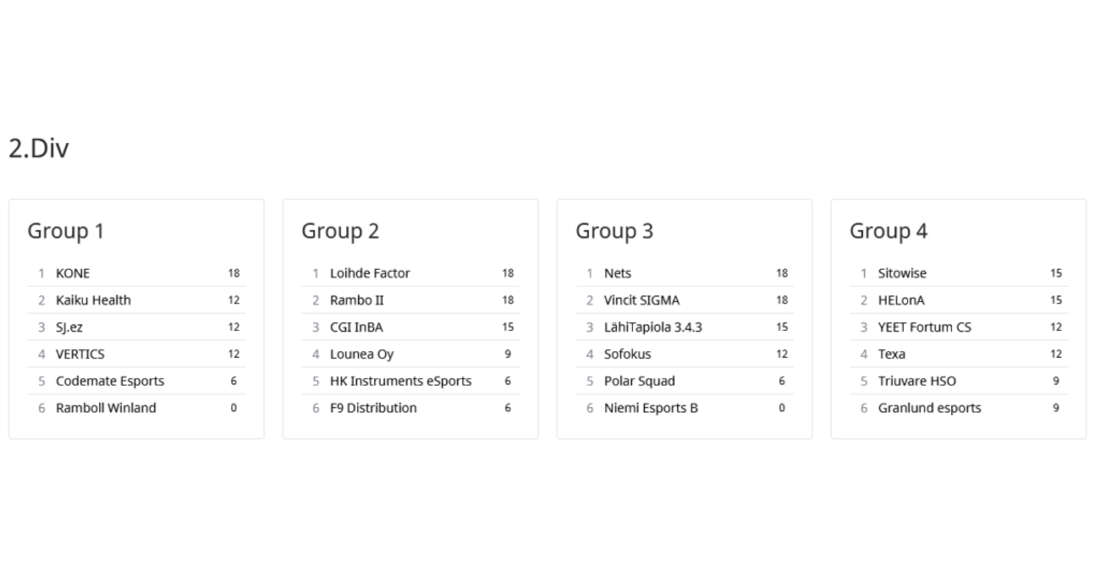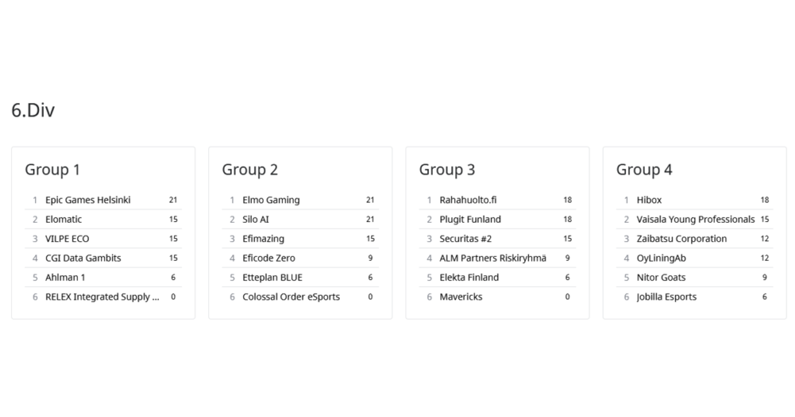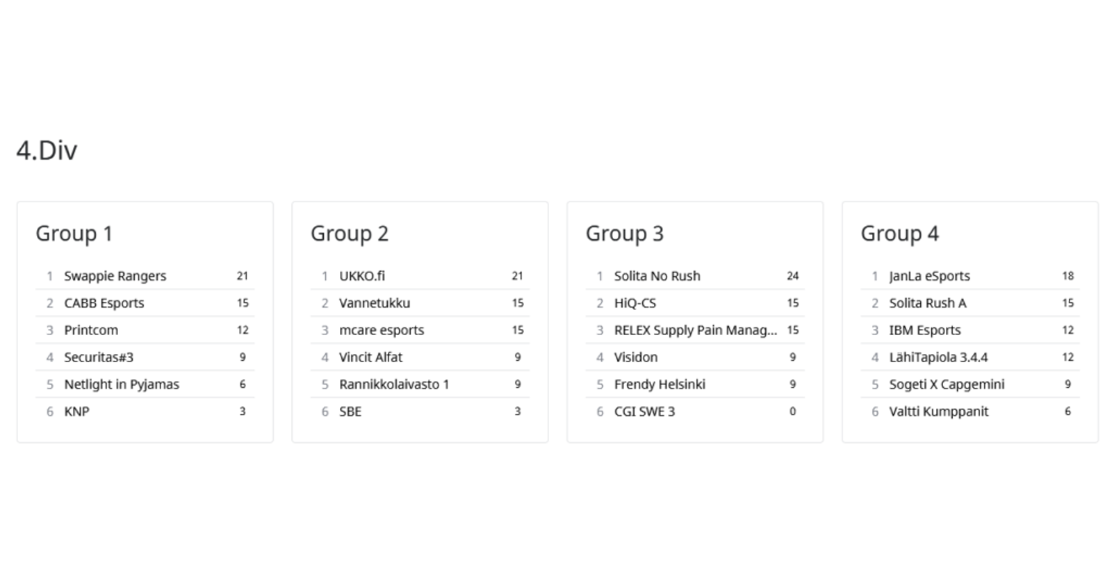 Divareiden tilanne neljännen viikon jälkeen